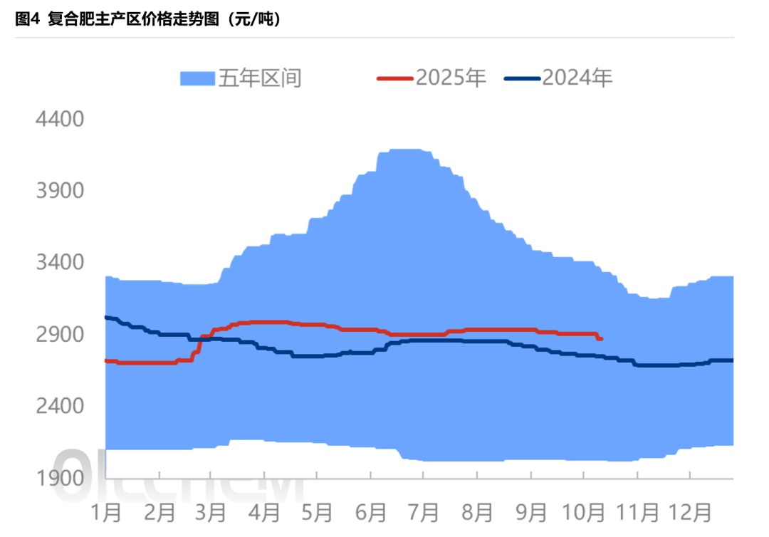 尽管2025年上半年复合肥价格走势与2024年相反,但在下半年保持一致,三四季度承压下滑。究其原因:一是成本支撑下滑,二是需求后延且缩减。后期看复合肥低价扫尾秋季小尾巴,助力渠道端清理库存,从而为冬储做准备,价格向最新成本端靠拢。