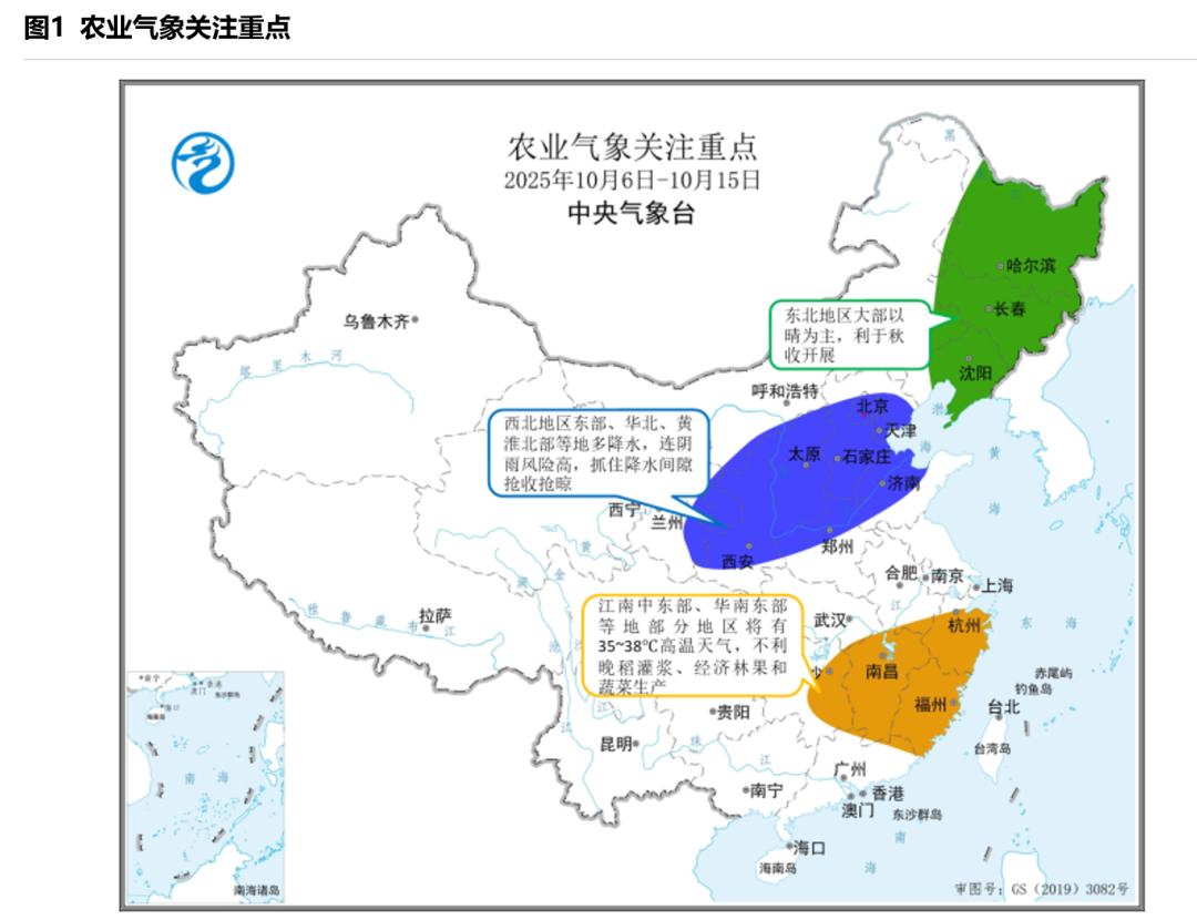国庆假期前后,国内西北地区东南部、黄淮、江淮北部、江汉西部等地出现持续阴雨天气,多雨寡照不利于未成熟玉米、一季稻、大豆籽粒灌浆,农田持续过湿影响成熟作物机收作业,部分地区叠加大风天气导致作物出现倒伏,也进一步增大了收获难度,陕豫晋鲁鄂皖秋收进度同比偏慢,局地倒伏玉米出现穗发芽和霉变现象。同时,粮食价格偏低,造成终端收益下滑,农户对下一季小麦的用肥呈现谨慎态度。